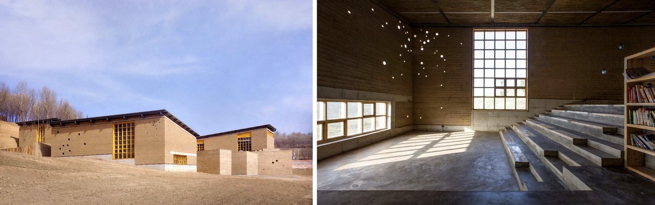Photos et architecture : OnEarth Architecture/Wei Jiang et Jun Mu – Matériaux : pisé non stabilisé damé sur site (terre 50 %, gravier 30 %, sable 20 %).
