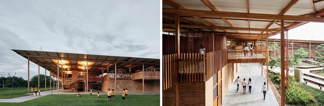 L’école Canuanã a été créée il y a quarante ans pour améliorer l’enseignement dans une région rurale, proche de la forêt amazonienne. De la maternelle à une formation en agriculture, elle accueille plus de 800 enfants et adolescents. Le campus offre à la fois un centre éducatif et un foyer chaleureux. Depuis 2017, deux nouveaux internats de 270 lits chacun accueillent les élèves du primaire dans un lieu qui a nettement amélioré leur qualité de vie et leurs résultats scolaires. Leur conception a été inspirée par des réflexions sur les cultures locales et la création d’un sentiment d’appartenance. Au lieu de répéter l’organisation classique des grands dortoirs, chaque ensemble comprend 45 chambres de 6 personnes, disposées au rez-de-chaussée autour de 3 cours intérieures. Sous la vaste toiture, l’étage abrite des salles d’étude et de loisirs ainsi que des espaces pour lire ou discuter dans le balancement des hamacs, à l’abri du vent et du soleil. Ces zones communes, conçues avec les élèves, rendent leur quotidien plus agréable dans une région où la chaleur est intense et constante tout en renforçant les liens entre eux et avec leur école.