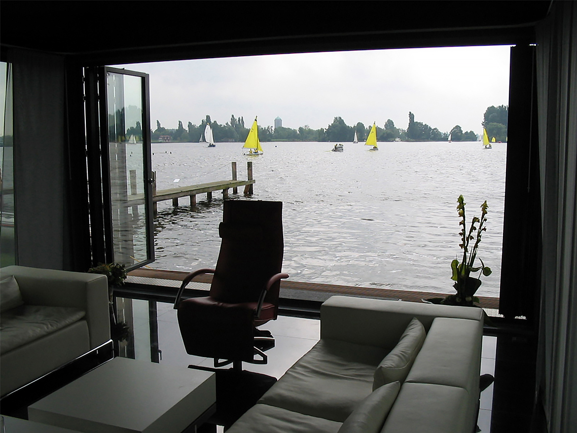 La maison amphibie Snel à Aalsmeer : Vue imprenable sur le fleuve. Source : Waterstudio