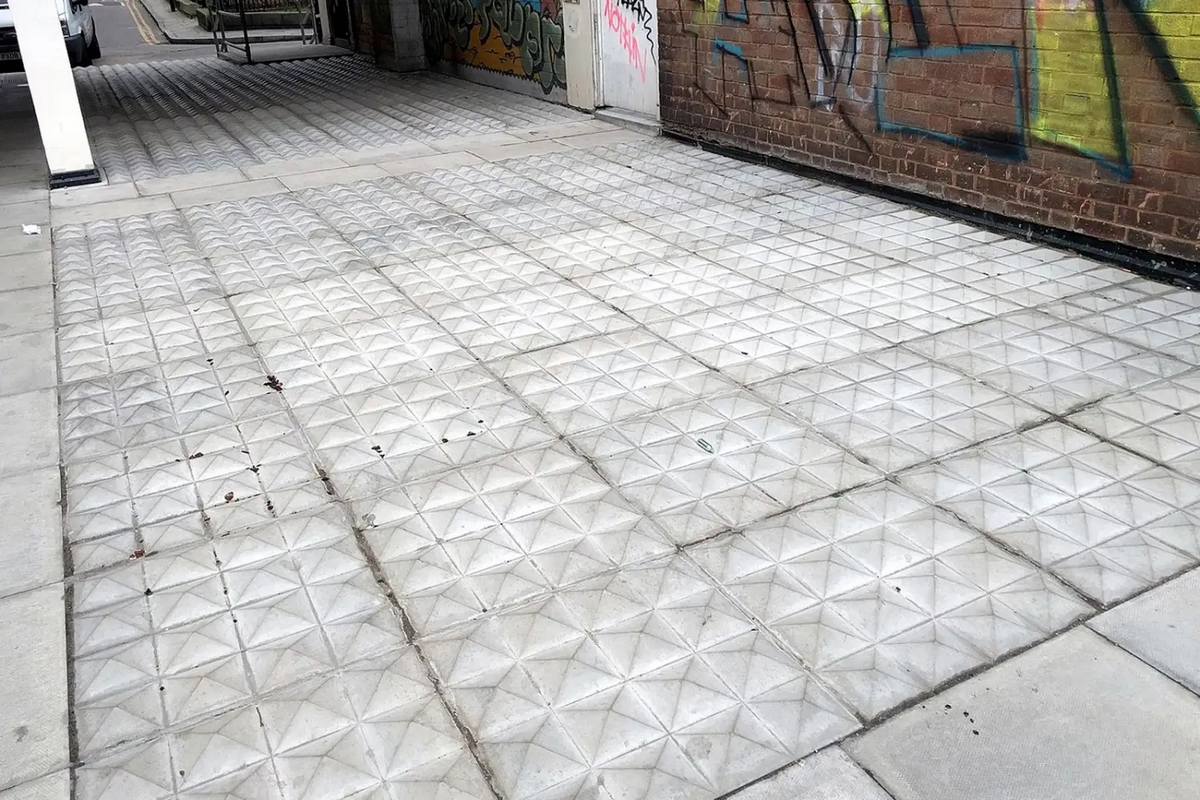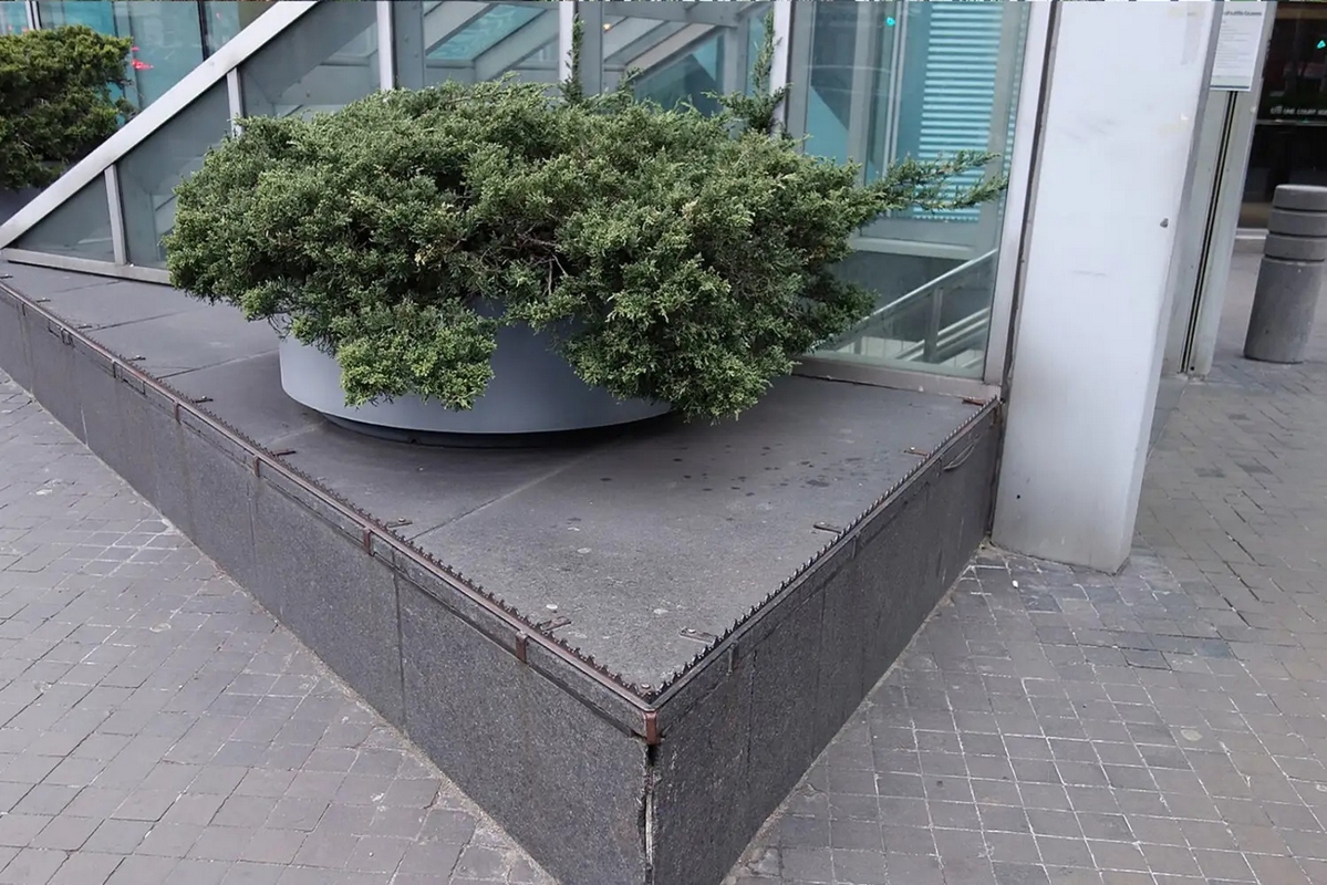 Pointes de sol à Shoreditch, Londres, conçues pour empêcher les sans-abris de dormir à même le sol. – Source : The Neighborhood Design Center