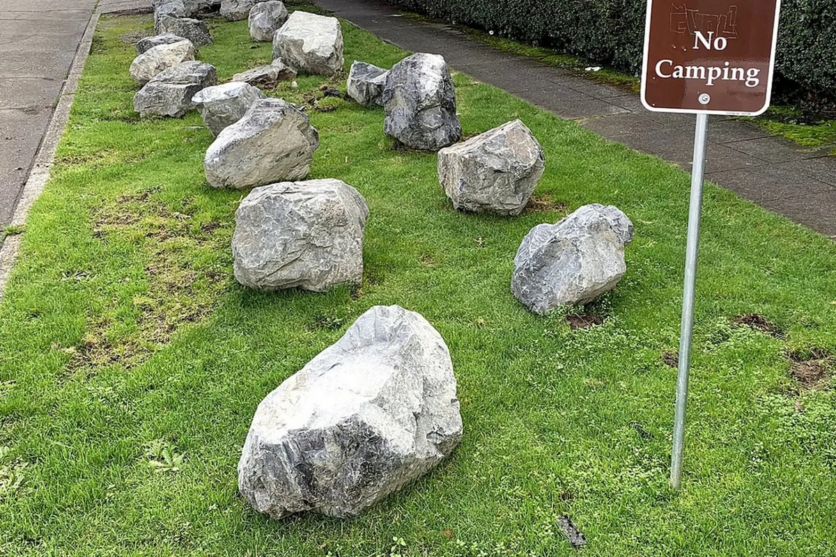 Des pierres, un choix pour contrer l’installation de campements. – Source : The Neighborhood Design Center