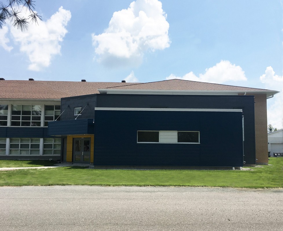 Mais le terrain leur a donné du fil à retordre. « On s’imagine qu’en milieu villageois, on a de l’espace, mais ici, ce n’est pas vrai. On était coincé entre le parc-école et les voisins », décrit André Bourassa, architecte retraité. En outre, en raison de la proximité avec le voisin, le Code du bâtiment exigeait qu’une façade du gymnase soit construite en matériau incombustible. L’équipe a donc entamé des démarches auprès de la Régie du bâtiment du Québec (RBQ) pour proposer une mesure différente qui réponde aux objectifs de résistance au feu du Code de construction. Dans un commun effort, appuyée par la municipalité et Cecobois, l’équipe a proposé une solution que la RBQ a acceptée. « Le Centre de services scolaire a engagé un consultant spécialisé pour négocier avec la Régie. Un autre donneur d’ouvrage moins convaincu aurait choisi la simplicité et construit en acier », observe André Bourassa.