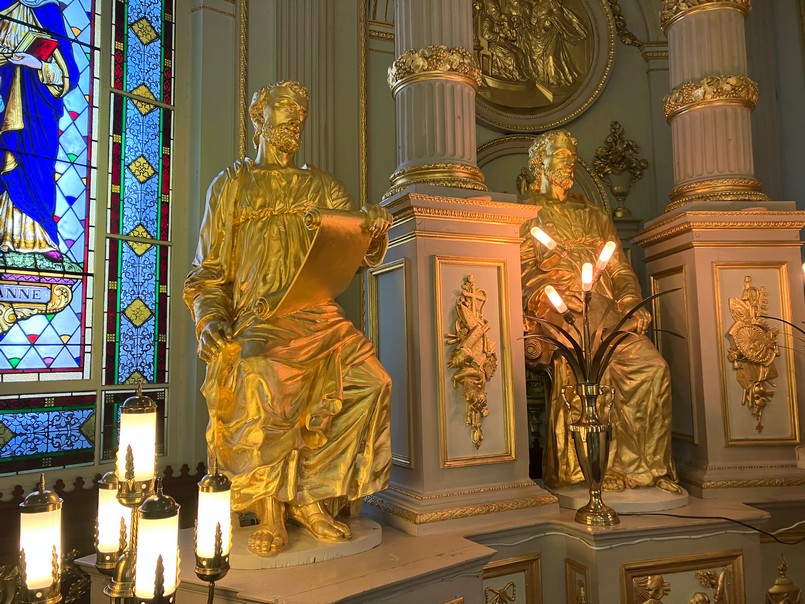 Photo 3 – Exemple du travail du bois et de la feuille d’or dans l’Église Saint-Joachim, Côte-de-Beaupré. Photo : Louis Lapointe