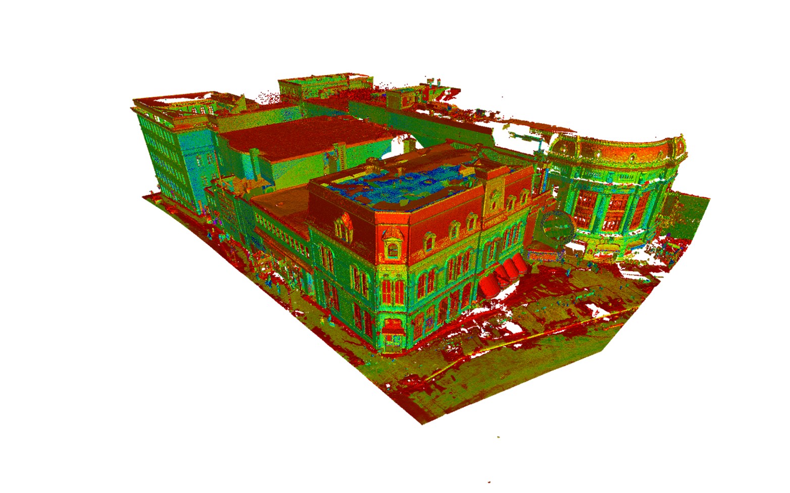 Concernant le relevé des autres ouvrages, la technologie par « nuage de points » s’avérera le médium le plus approprié à leur modélisation. Une fois les images réalisées, on procède à l’enlèvement de la structure arrière et à l’installation d’un ouvrage d’acier assurant le maintien de la maçonnerie durant sa rénovation.