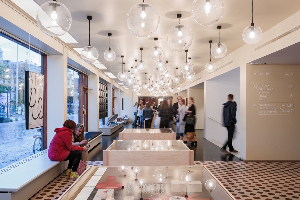 L’éclairage du Lasipalatsi a été remis à neuf par l’agence JKMM et supervisé par l’architecte spécialiste du patrimoine Katja Savolainen. Le néon extérieur du cinéma Bio Rex (Photo d'ouverture du texte) a aussi été remis à neuf en gardant les couleurs d’origine.
