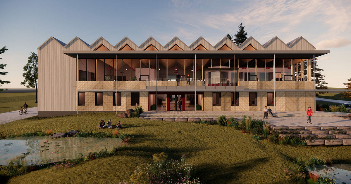 Le nouvel hôtel de ville de La Pêche, tout en bois et à très haute efficacité énergétique, deviendra le premier bâtiment institutionnel certifié Passivhaus au Québec. – Source : BGLA Architecture Architecture