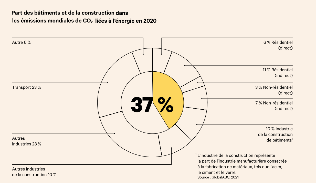 Face à l’urgence climatique, l’Europe s’est engagée politiquement à travers la mise en place d’une loi, fit for 55, visant à réduire de 55 % les émissions de GES d’ici 2030 et, à plus long terme, à atteindre la carboneutralité d’ici 2050. Touchant l’ensemble des secteurs d’activité, la nouvelle législation inclut douze propositions, dont la Directive sur la performance énergétique des bâtiments (DPEB). Cette réglementation met l’emphase sur la réduction de la consommation énergétique des bâtiments. De plus en plus d’initiatives européennes intègrent le carbone intrinsèque, soit le carbone émis par la fabrication des matériaux de construction. C’est le cas de la Déclaration de Chaillot, signée par 70 pays en mars dernier lors du Forum bâtiment et climat, qui encourage l’utilisation de matériaux de construction à faible empreinte carbone. À travers la mise en place de ces politiques sur la décarbonation des bâtiments, l’Europe reflète son engagement à transiter vers un secteur à faible émission de carbone et promeut des pratiques de construction plus respectueuses de l’environnement.
