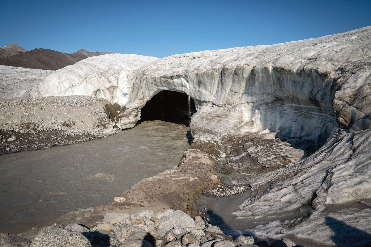 NUNAVUT – 2023 : À mesure que le Grand Nord se réchauffe, les Inuits sont confrontés à d’énormes changements paysagers, notamment le dégel du pergélisol et le retrait de la glace de mer et des glaciers, comme celui-ci près de Pond Inlet. – Photo : Kay Nietfeld/Getty Images