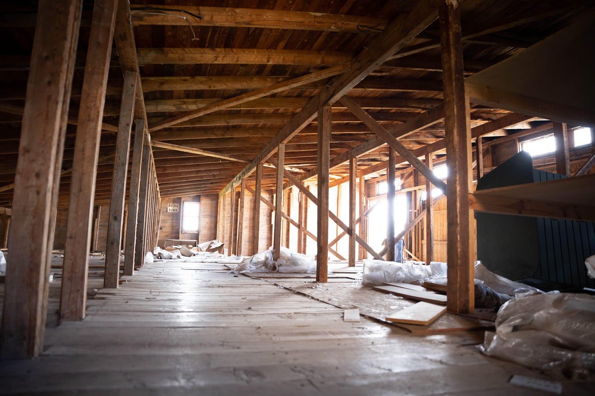 À Grande-Rivière en Gaspésie, la Régie intermunicipale de traitement des matières résiduelles de la Gaspésie a entrepris la déconstruction d’une quincaillerie. Ménage intérieur avant la déconstruction. – Photo : RITMRG/Lucille Parry-Canet, 2022