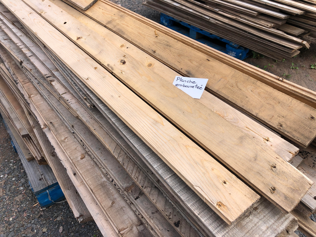 Décontruction d'une quincaillerie de Grande-Rivière, planches triées pour la vente. – Photo : RITMRG/Lucille Parry-Canet, 2022