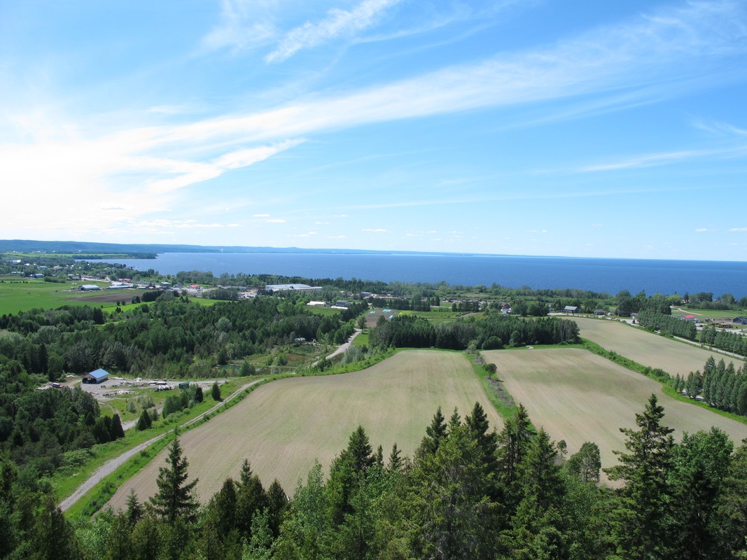 En juin 2018, aperçu des terres agricoles en bordure du lac Saint-Jean. Elles ont été inondées en 1926 (la superficie inondée est estimée à 25 000 hectares, selon le livre Tragédie du Lac-Saint-Jean, comité de défense des cultivateurs lésés, 1927), après l’ouverture des vannes par la Duke Price au barrage à la tête de la Grande Décharge à l’île Maligne, près d’Alma. La compagnie n’avait pas prévenu les cultivateurs, leur assurant même que l’ouverture des vannes n’aurait lieu que deux ans plus tard. Selon Denis Trottier, initiateur du projet de la commémoration à Onésime Tremblay, « la quantité de terres qui a été complètement noyée n’est pas si grande qu’on pourrait le penser. Cependant, si l’on ajoute à cela les terres qui sont devenues impropres à la culture en raison de l’élévation de la nappe phréatique, cela fait beaucoup plus. Il faut noter également qu’au printemps, lors de la crue des eaux, beaucoup de terres étaient noyées temporairement, l’eau montant de près de 20 pieds par rapport aux basses eaux. Mais ce n’était pas un problème, parce que cela ne durait que quelques semaines. C’était même bénéfique parce que les terres s’enrichissaient d’alluvions fertiles. La tragédie, c’est que c’est devenu permanent », souligne M. Trottier – Photo : Manon Sarthou.