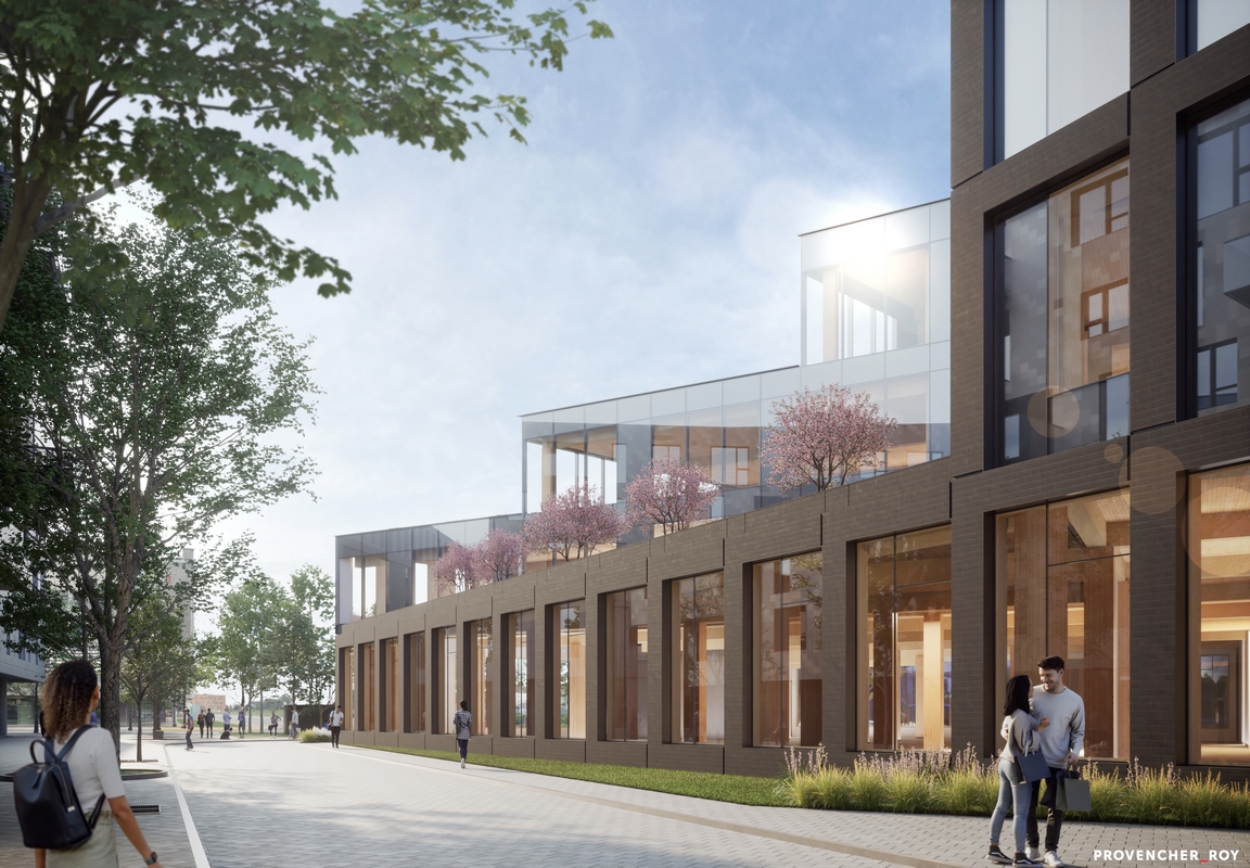 Pour atteindre les exigences de cette ambitieuse certification, rien n’a été laissé au hasard. La firme d’architecture Provencher_Roy, reconnue pour son expertise en matière de développement durable et partenaire de longue date du Technopôle Angus, a ainsi été mise à contribution. « Pour la certification BCZ, nous avons réalisé plusieurs analyses de cycle de vie du projet, et ce, dès les premières esquisses, explique Guillaume Martel, architecte associé chez Provencher_Roy et expert en développement durable pour ce projet. Nous avons analysé une structure d’acier, une structure de béton, une structure de bois… Cela nous a conduits à rainer la réflexion et à voir l’impact réel de faire ce projet. » Ces analyses ont favorisé la prise de décisions éclairées, notamment celle de réduire le nombre de cases de stationnement. Les différents scénarios réalisés en amont avec les ingénieurs en structure ont permis de conclure qu’une structure en bois, conjuguée à d’autres solutions environnementales, réduisait de près de 50 % l’empreinte carbone de la structure. « Ce sera le bâtiment le plus écologique de l’îlot central », estime Sonia Gagné, architecte associée principale chez Provencher_Roy et chargée de projet pour le Bloc 3.