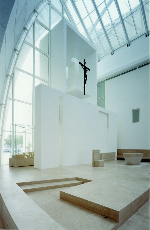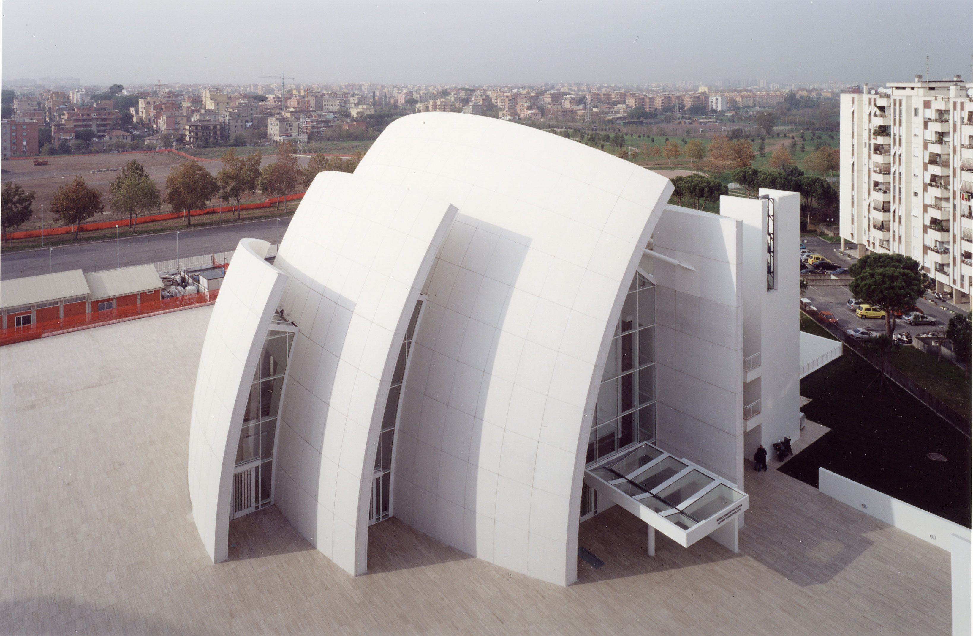Dans le quartier romain de Tor Tre Teste a été réalisée l’Église Dives in Misericordia par l’architecte américain Richard Meier, gagnant du concours international ouvert par le vicariat de Rome. Pour répondre, entre autres, à la qualité esthétique exigée par l’architecte, on a utilisé le ciment photocatalytique TX Arca® capable d’éliminer les contaminants organiques et inorganiques qui décolorent habituellement les bétons conventionnels. Source : ITALCIMENTI
