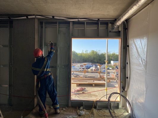 Une isolation en mousse giclée à cellules fermées et cette nouvelle méthode d’application suppriment la nécessité pour l’applicateur de mousse giclée de travailler à l’extérieur, ce qui permet aux autres corps de métier de l’enveloppe du bâtiment de travailler plus rapidement sur l’extérieur du bâtiment et de terminer leur partie du projet de construction. Cela permet de gagner du temps sur le chantier, d’être plus économique et d’obtenir une enveloppe de bâtiment de meilleure qualité et plus durable.