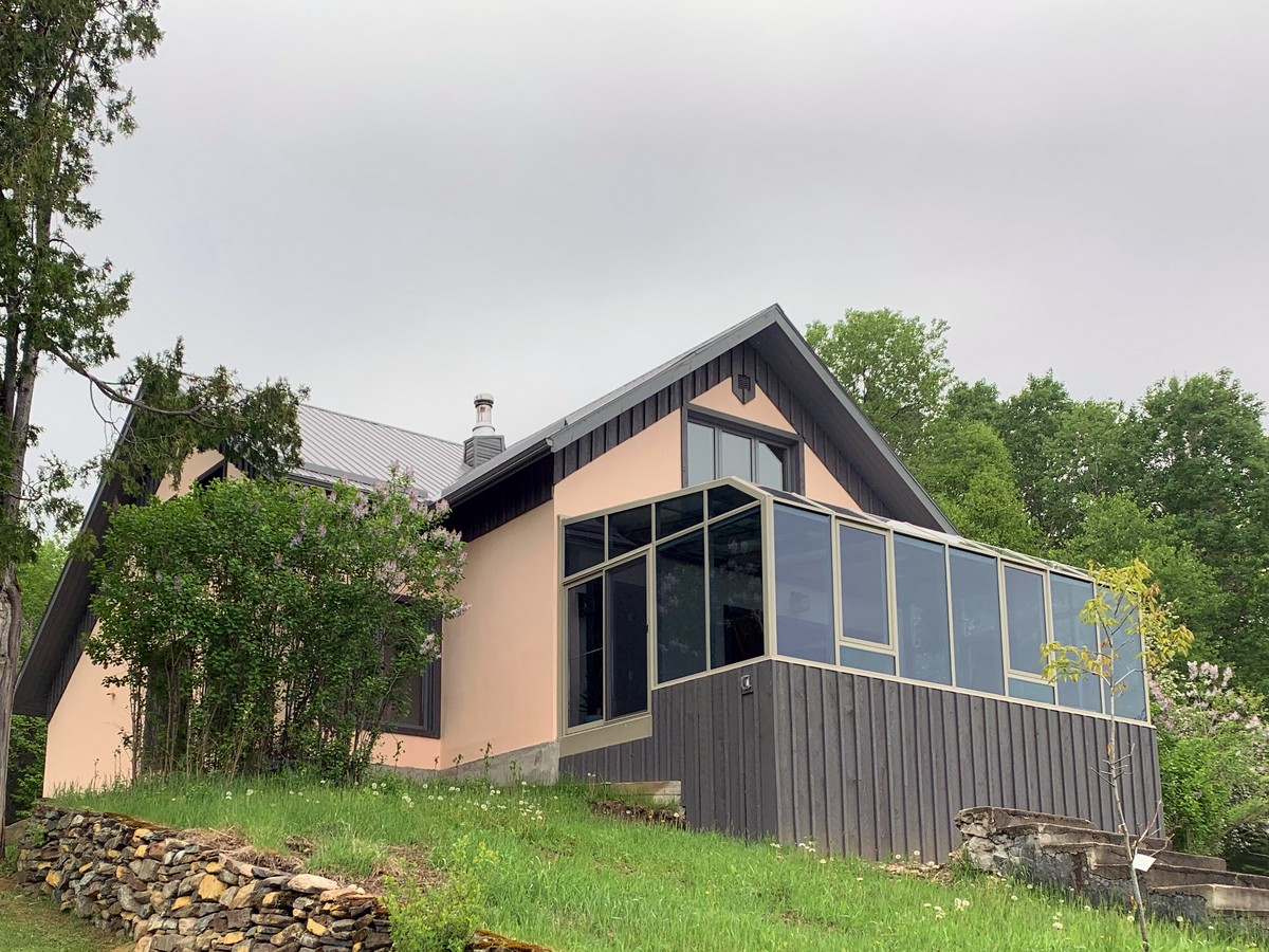 Autre exemple prometteur, le projet Ahuntsic Réno de l'architecte Kim Cloutier. Elle nous l’explique en ses mots cette conversion d'un duplex en cottage : « Les raisons principales qui m’avaient fait opter pour ce produit sont que nous rénovions une maison des années 50, dont les murs extérieurs sont en carré de bois. Le pare-air existant était d’origine et je voulais un isolant qui pourrait bien réagir aux différentes intempéries du Québec. De plus, le produit est 100 % naturel et fabriqué localement ! »