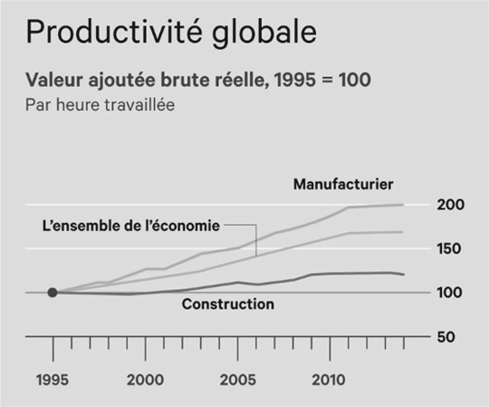 Dans un article publié le 17 août 2017 et intitulé « The construction industry’s productivity problem », le magazine The Economist est explicite : « […] no industry has done worse… But the trade as a whole is reluctant to spend money on the sorts of technologies, from project-management software to mass production, that have revolutionised so many other industries1 ».