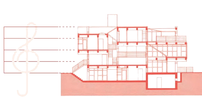 Analogie musique et projet Genterstrasse de l'architecte Oto Steidle.