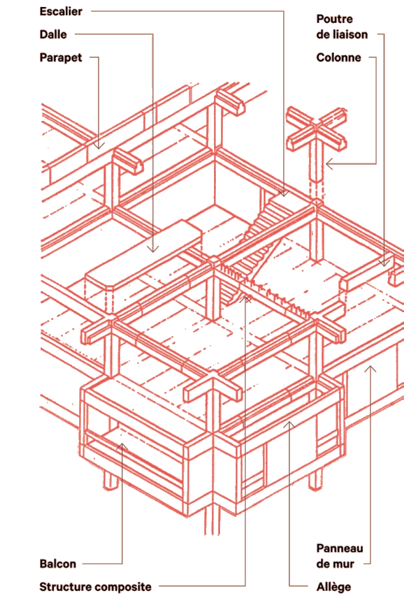 I. Le Meccano assemblé au chantier – Environ 60 à 65 % du travail est réalisé en usine