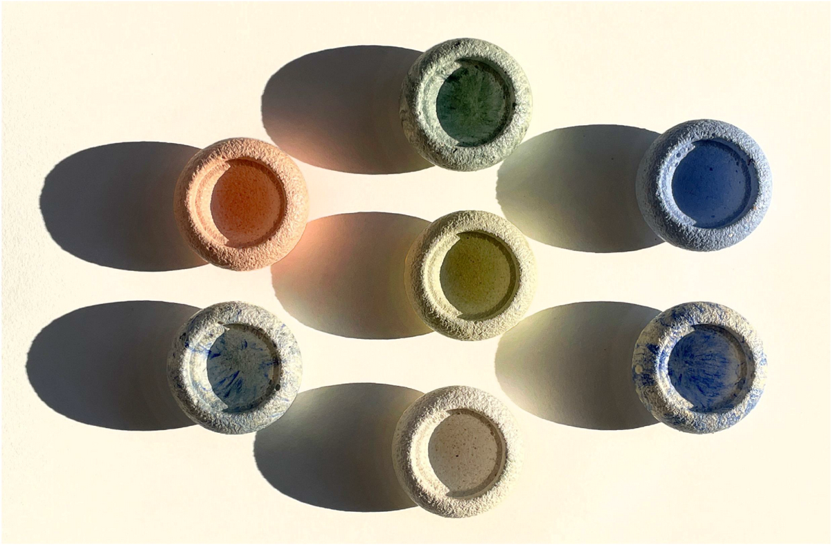Binz écodesign donne vie à des objets de décoration et d’art de la table en matériau biosourcé, composé à 80 % de coquilles d’œuf et 20 % d’un liant naturel à base d’algues. Leur matière première provient de partenaires parisiens dont il collecte les résidus, qu’ils lavent, stérilisent et sèchent soigneusement avant de les broyer en une fine poudre. Chaque pièce est façonnée à la main.