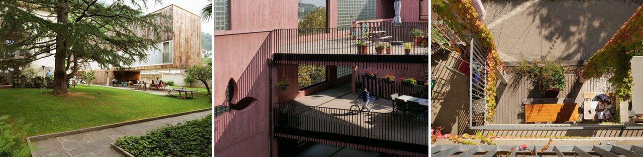 Dans l’ordre : CASA DIOPPA, maison bifamiliale. Guidotti architetti, Montecarasso, Suisse, 2018 – ERLENMATT OST, logements, ateliers de vie et de travail assistés, commerce et services. Galli Rudolf architekten, Bâle, Suisse, 2017 – COOPÉRATIVE SOUBEYRAN, logement coopératif. ATBA architectes, Genève, Suisse, 2018.