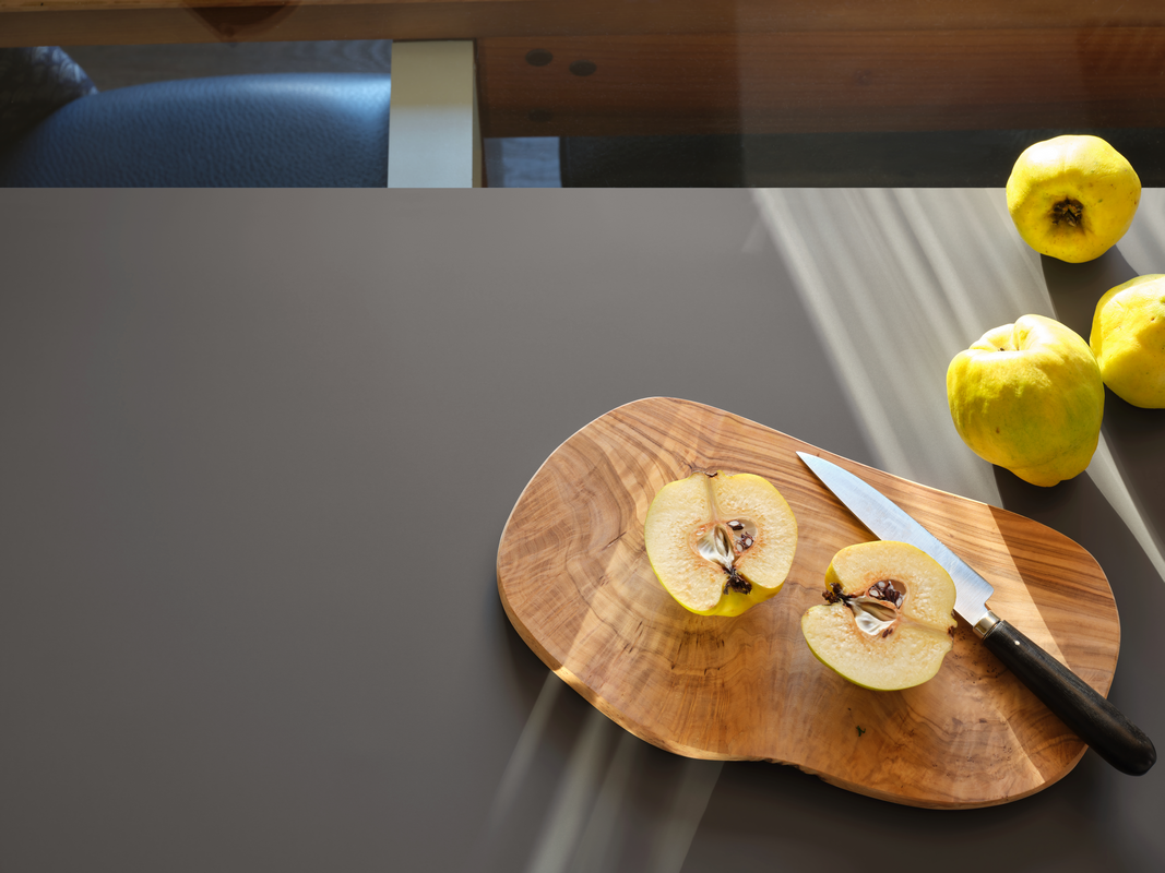 Viola Orissa – Inspirée par la région indienne où serait née l’aubergine, cette couleur tire un aspect extrêmement mat du ton typique de ce fruit ; ajoutant une nuance de violet foncé à la palette de couleurs signatures de FENIX®. Raffinée et intense, Viola Orissa confère un aspect profond et créatif au design de surface.
