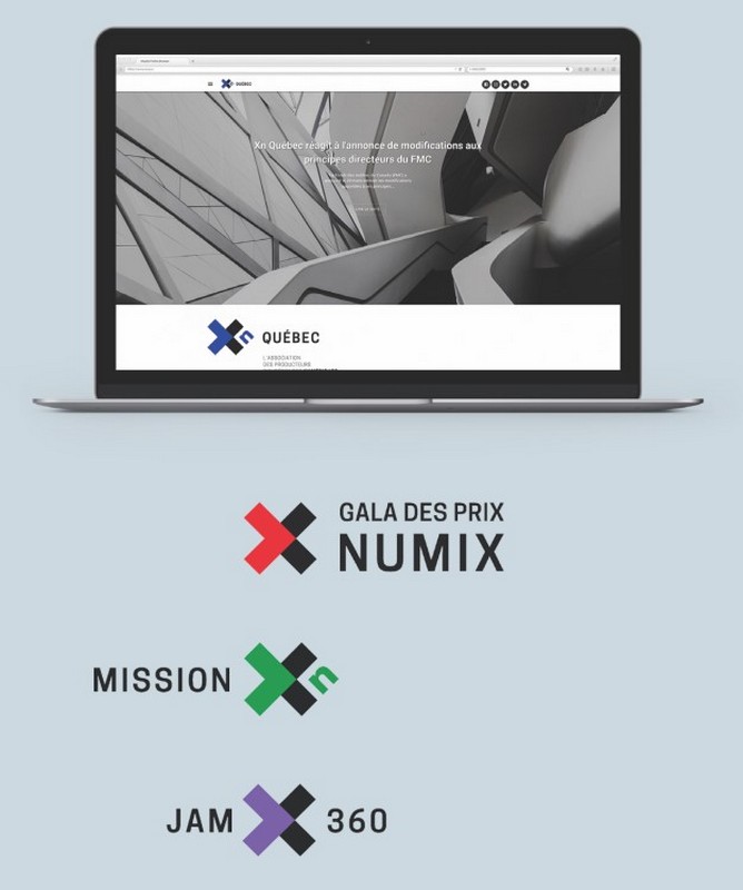 Voici par contre un exemple de collaboration réussi. L’objectif de ce mandat était de simplifier et d’unifier l’image d’une association regroupant plusieurs disciplines sous une même bannière. Yan Marchildon, directeur de création chez YMG design, explique sa démarche : « De prime abord, la direction de Xn Québec avait déjà bien mûri le besoin d’une nouvelle identité. À cet effet, le nom du Regroupement des producteurs multimédia fut abandonné au profit de Xn Québec. Par sa simplicité, la nouvelle nomenclature était déjà gagnante. Le deuxième défi était de trouver la meilleure façon de créer une grande famille d’entités dérivées. On parle d’environ 15 d’entre elles, soit : Tournée Xn, Conférence Xn, Clinique Xn, etc. La lettre X a été sectionnée pour faire apparaître une flèche directionnelle vers la droite – symbole de mouvance et d’avenir –, alors que la lettre n s’est intégrée d’emblée dans l’axe principal de cette flèche. Le bleu ayant été retenu, il restait à déterminer une couleur propre à chaque déclinaison. »