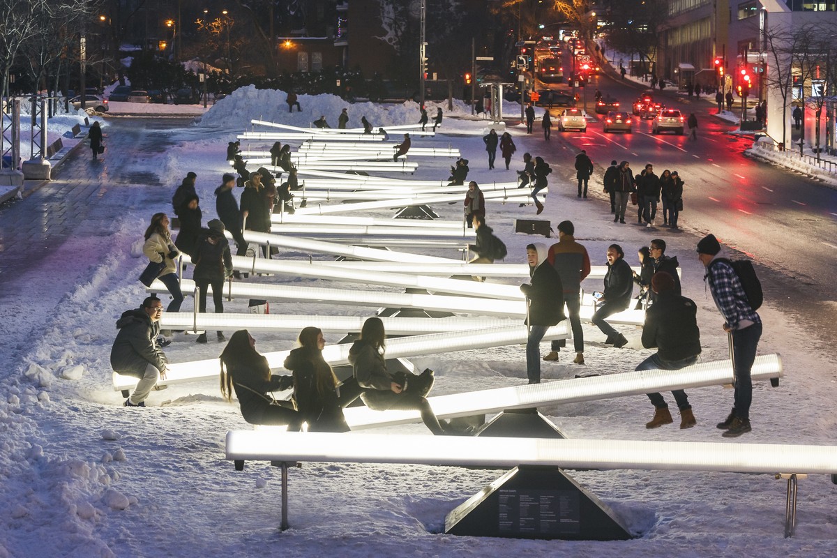 Lors de la première édition en 2010-20111, rien ne pouvait présager la grande réussite de Luminothérapie ; un événement hivernal d’animation urbaine axé sur la conception d’installations lumineuses interactives et participatives. Depuis, plusieurs villes américaines et européennes se sont intéressées à cette manifestation à grand déploiement sur la place des Festivals dans la métropole québécoise.