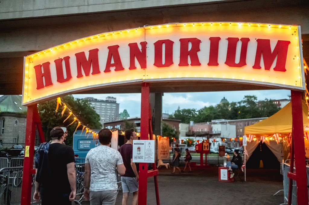 Conçue et imaginée par Ève Cadieux et Vincent Roy, HUMANORIUM – l’étrange fête foraine est une exposition itinérante qui prend la forme d’une fête foraine inspirée de XIXe et XXe siècles. Ce rassemblement populaire en plein air regroupe les œuvres d’une dizaine d’artistes en arts visuels et multidisciplinaires qui questionnent l’être humain, ce qu’il est aujourd’hui. Artistes : BGL, Dgino Cantin, Dominic Gagnon, Érick d’Orion, Eruoma Awashish et Nicolas Lévesque, finlarmoiement, Jack Burman, Joan Fontcuberta, Louis Fortier, Marc Séguin.