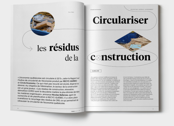 Le sujet des écomatériaux offre l’occasion de découvrir les applications insoupçonnées des végétaux, notamment de graminées bien adaptées au climat québécois, ainsi que la paille qui aurait un bon potentiel au Québec. Les résidus de construction, deuxième matière la plus éliminée, retiennent notre attention. Aussi au menu, la construction du gymnase de l’école Centrale de Saint-Samuel-de-Horton par BGA Architectes, un propos qui mise sur le bon usage du bois… et de la forêt.