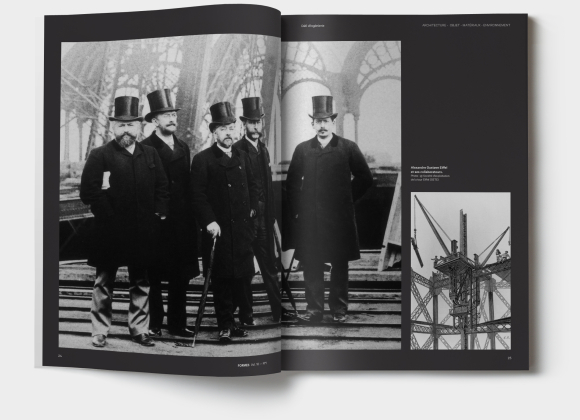 Au-delà de la tour, ce papier révèle également l’influence d’Eiffel, notamment à l’ancienne imprimerie-librairie-bibliothèque de la grande maison parisienne d’édition Calmann-Lévy. Réaménagé en 2020 en restaurant et lieu de co-working, on y retrouve l’empreinte de l’ingénieur, entre autres les mezzanines, les escaliers en colimaçon, les balustrades, les poutres de fer fixées avec des boulons. Tous ces éléments ont été conçus dans les ateliers Eiffel à Levallois-Perret à la fin du XIXe siècle.