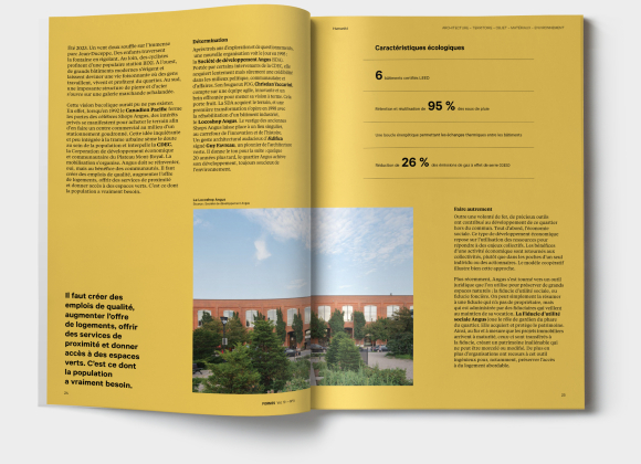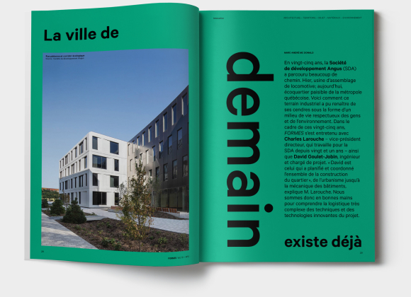 Marie Dallaire a rencontré Christian Yaccarini. Son portrait de l’homme, de l’histoire du lieu, des réalisations insérées dans ce tissu urbain imaginatif est révélateur. « Angus n’est pas la somme de ses immeubles. Il exprime une construction sociale dont les processus de conception paraissent complexes, et l’effort pour y arriver tenace », exprime Marie en introduction.