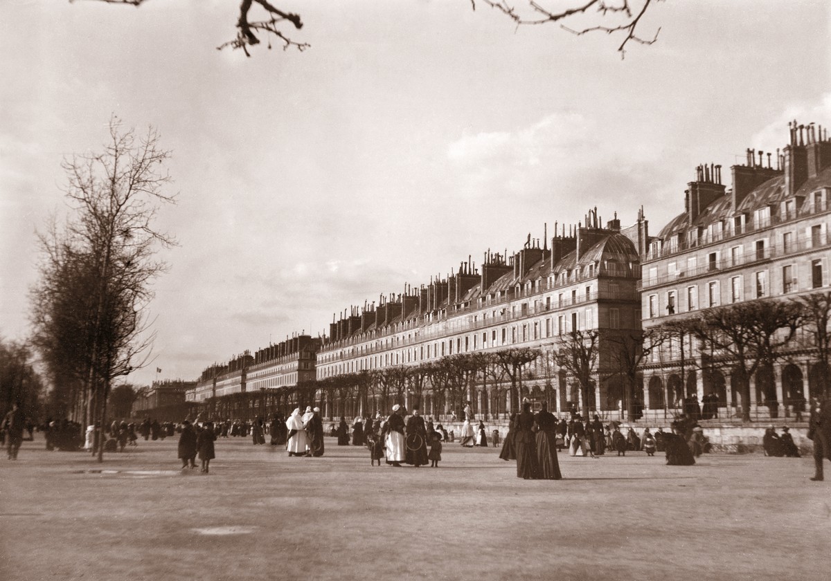 Photographié par Martial Caillebotte, le jardin du Louvre, les Tuileries et la grande allée de la rue de Rivoli la bordant – 6 février 1892. Photo : Martial Caillebotte – Collection particulière © Comité Caillebotte, Paris