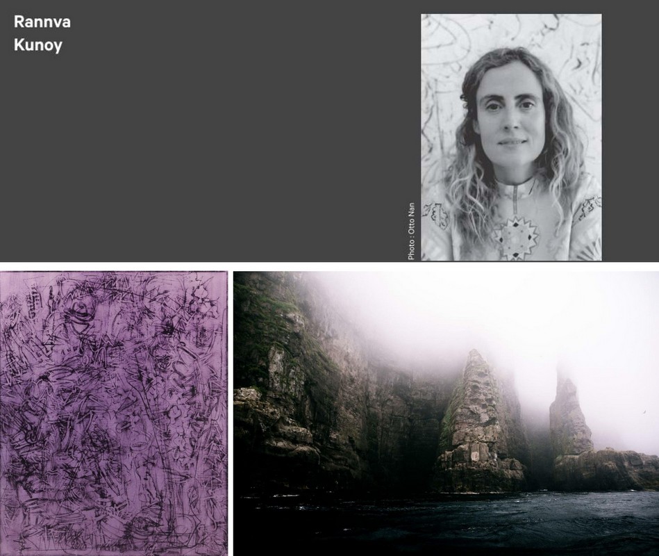 La jeune génération est représentée par Rannva Kunoy, diplômée du Royal College of Art de Londres en 2001. Restée en Angleterre après ses études, elle mène une carrière internationale, exposant notamment en Corée, au Japon et aux États-Unis. Sa peinture contemporaine est caractérisée par des effets de profondeur et une impression tridimensionnelle. Elle cherche à transcender la matière physique, le temps et la nature. Ses toiles monumentales exposées à Paris ont été réalisées en 2021. Elles évoquent la lumière métallique du ciel sur les galets des rivages. Par les traits noirs, l’artiste a aussi fait ressortir l’obscurité de la nuit des îles Féroé qui survient rapidement en hiver.
