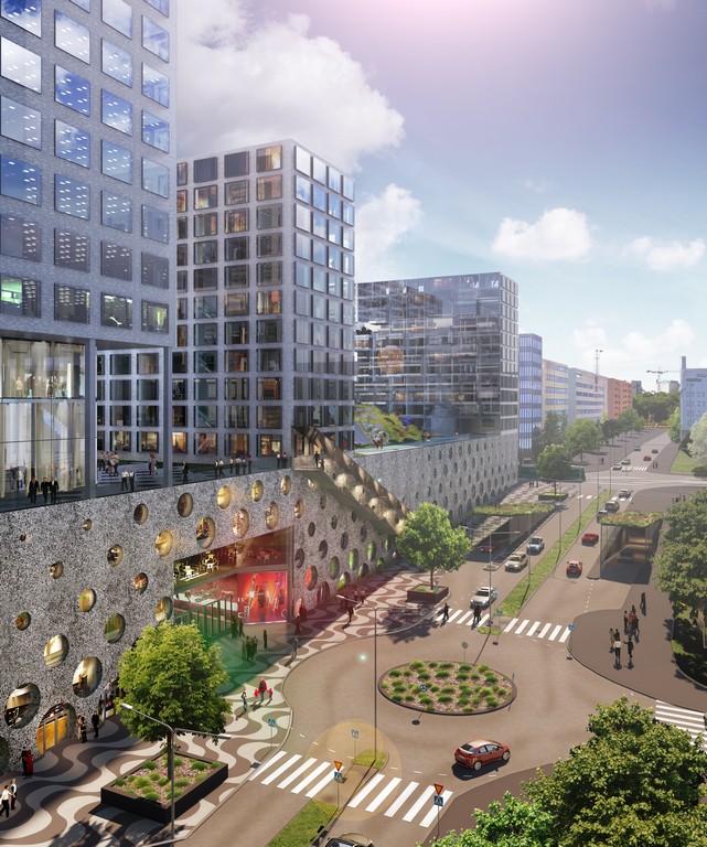 Le grand centre commercial multiplexe Tripla inauguré comporte des commerces, des bureaux, des appartements, un hôtel et deux stations de train. Situé au cœur de Pasila, il sera interconnecté et reliera l’est et l’ouest du quartier. Il s’agira d’un point phare de ce quartier de près de 90 hectares, que les futurs 30 000 résidents pourront fréquenter d’ici 2040 en empruntant les divers axes piétons aménagés entre les bâtiments. Près du centre Tripla sera construit un aréna pour des installations sportives et des événements (salons d’exposition ou spectacles). Source : Ville d’Helsinki