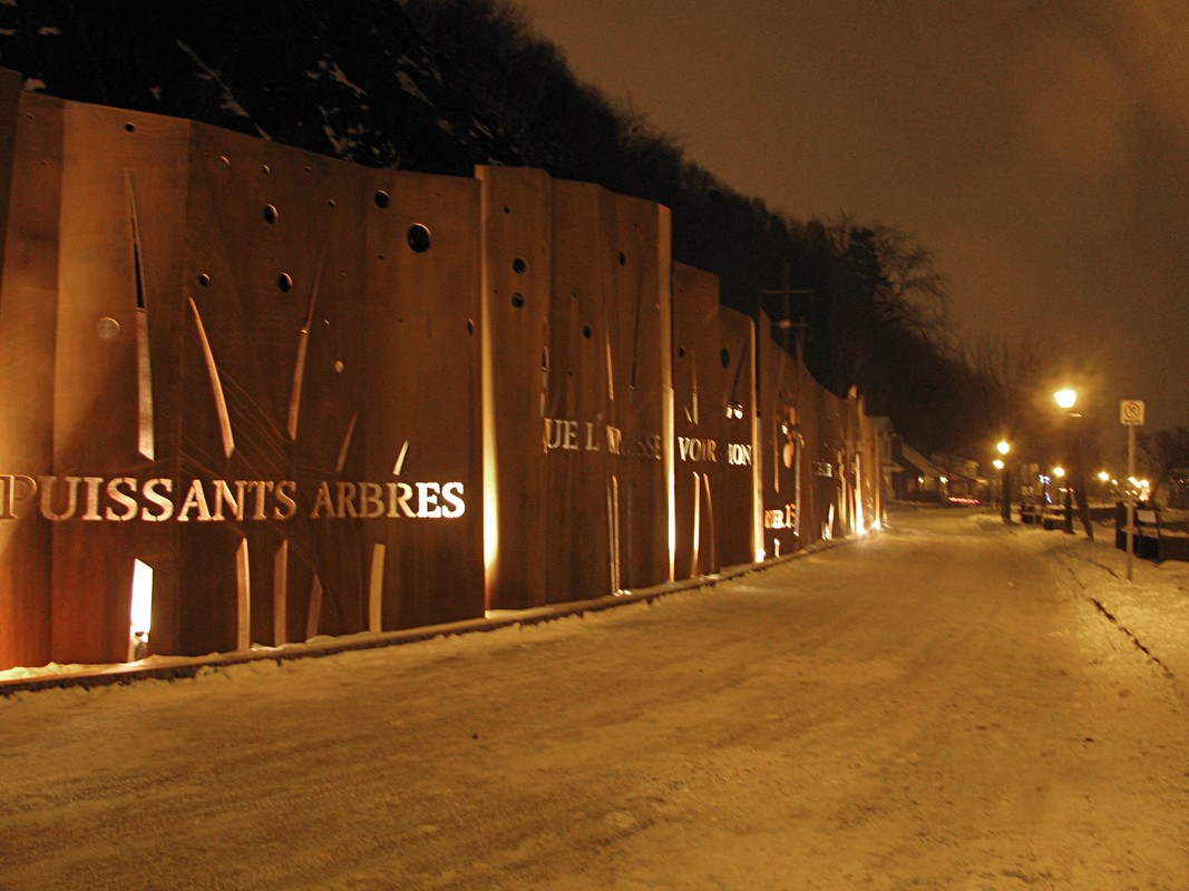 À titre d’exemples, rappelons le Mur mémoire érigé par le CCNQ à l’entrée de la promenade de la Plage Jacques Cartier ou encore le mur de pierres érigé par la Ville de Québec au pied de la falaise au bas de la Citadelle dans le Vieux-Québec.