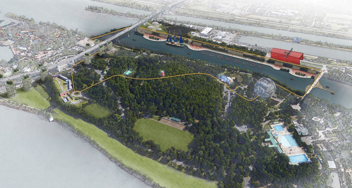 « Un musée, des environnements »… Lupien + Matteau conçoit un nouveau complexe muséal autour de la Biosphère. Alors que le musée actuel concentre ses activités dans un espace restreint – sous le dôme géodésique conçu pour le pavillon des États-Unis de l’Exposition universelle de 1967 –, sa réinvention pour 2067 par Lupien + Matteau greffe plusieurs sites voisins au complexe actuel. En 2067, le musée est pluriel et décloisonné. Il s’intègre à son milieu immédiat : parcs, berges, édifices et ponts. Le site accorde moins de place aux voitures qui doivent se garer à l’intérieur de tours de stationnement discrètes situées le long du pont Jacques-Cartier.
