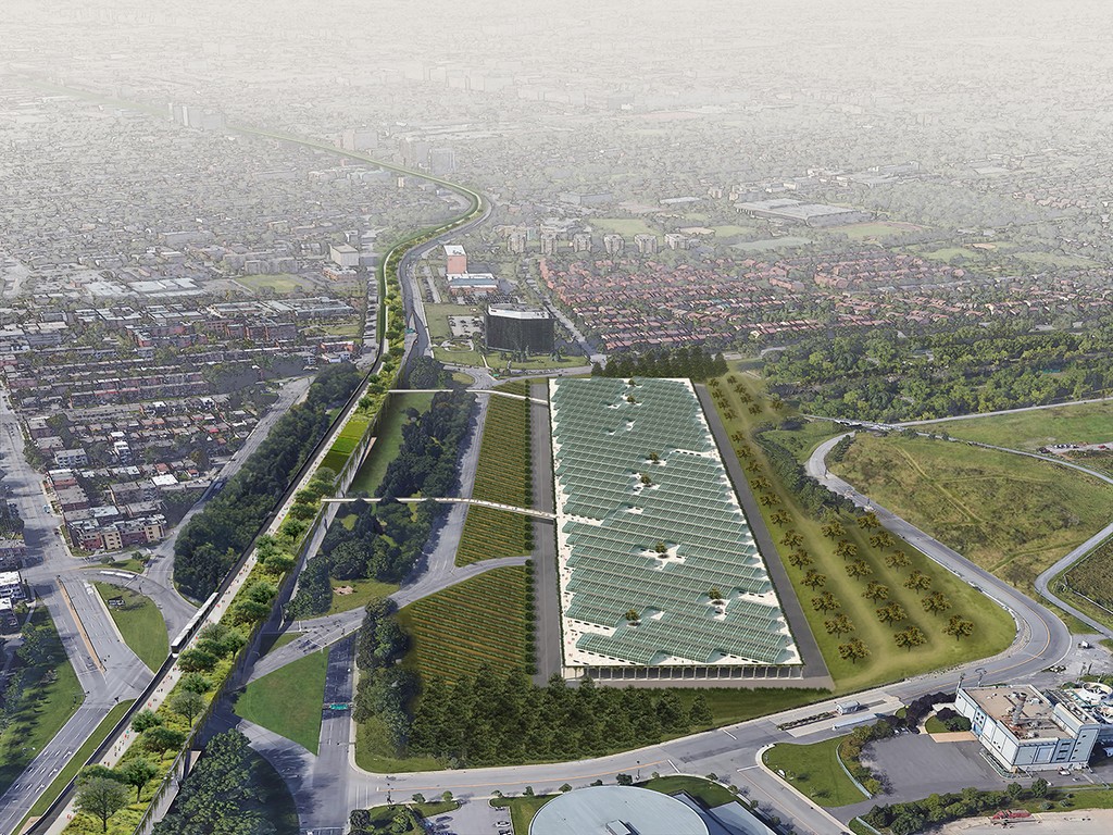 Requalification de la portion de l’autoroute transcanadienne entre les boulevards Saint-Laurent et Pie-IX. Le lieu devient vergers et potagers géants sur une autoroute urbaine. Pour recréer ce grand jardin, en plus de végétaux nectarifères attirant les insectes pollinisateurs, diverses plantes légumières et fruitières sont massivement cultivées sur la Métropoligne 40. Une place importante est réservée aux variétés de fruits et de légumes que cultivaient les premiers colons européens ainsi que les Premières Nations. Un marché public où sont vendues les denrées comestibles produites localement est ouvert à l’année. Il est combiné à un centre de renseignements et d’interprétation situé entre cette infrastructure réinventée et un vaste parc qui existe déjà : le parc Frédéric-Back.