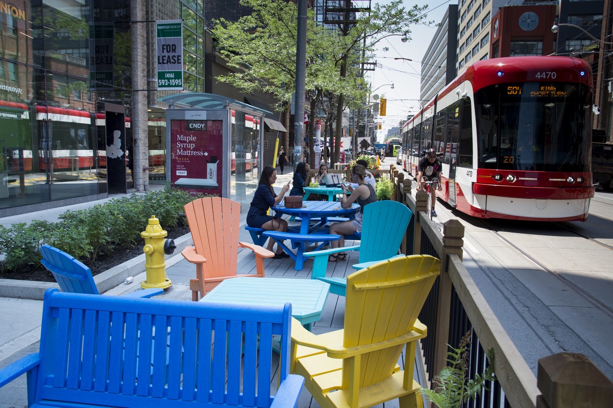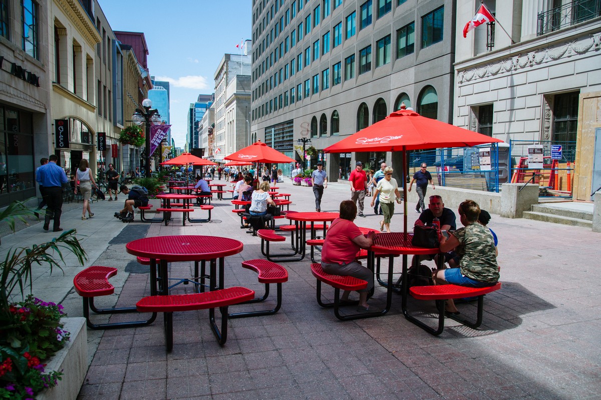 Retour de l’autre côté de la frontière, où le transitoire fait également son chemin. Le colloque de l’AAPQ, opportunément axé sur la mobilité au sein des villes et les moyens de redonner rues et espaces publics aux piétons et cyclistes, en a donné trois illustrations au cours de sa dernière session intitulée « Les villes en mouvement ». La rue Roy à Montréal, la rue Sparks à Ottawa et la rue King à Toronto ont ainsi été présentées par les principaux porteurs de projet : la municipalité, « propriétaire » des espaces publics, et le concepteur (urbaniste, architecte ou paysagiste).